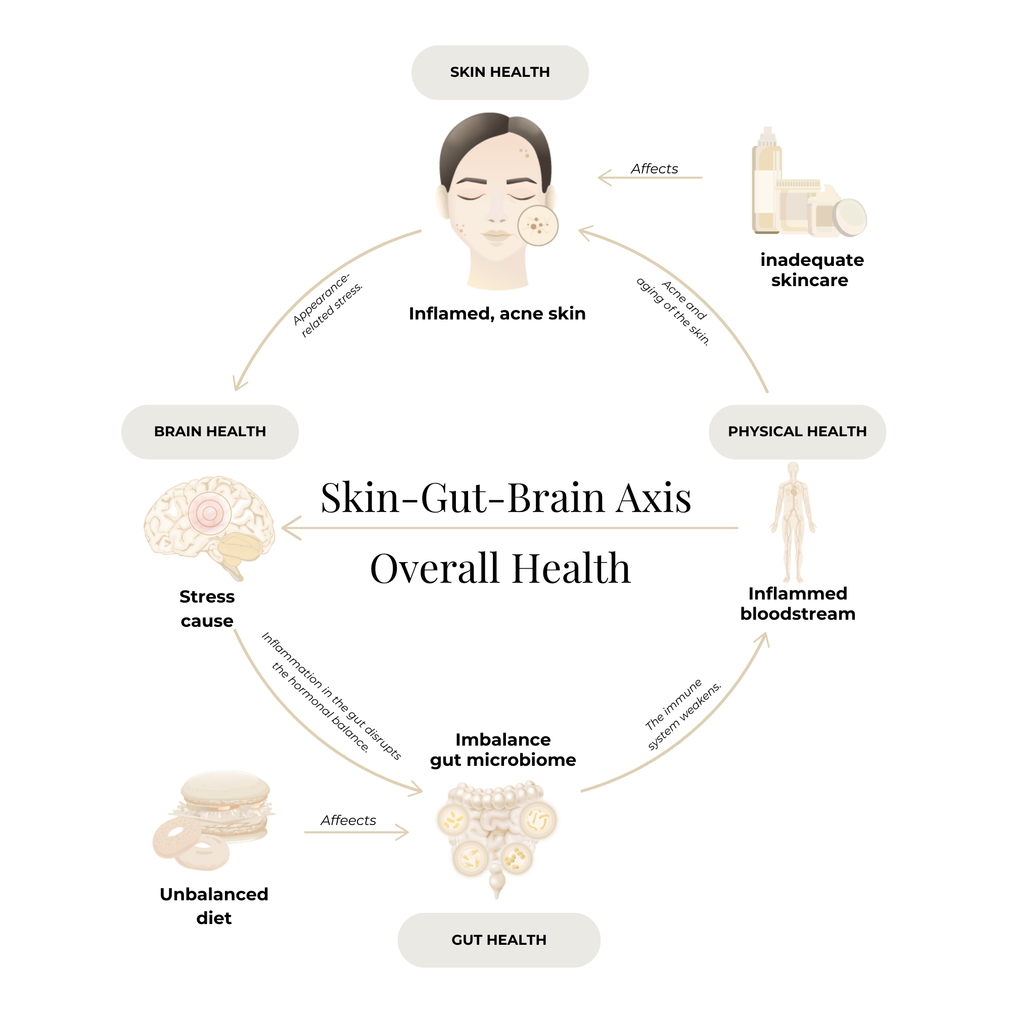 We are aware that true beauty and well-being are based not only on the care of the external, but also the internal and spiritual aspects of our body. The skin-gut-brain axis and its connection to acne is a concept close to our hearts and supported by extensive research. More and more studies are linking the presence of a “skin-gut-brain axis” that connects skin homeostasis, gut health, and emotions. A growing body of research links stressful emotions to a change in the gut microbiome, which promotes inflammation in the body and skin and leads to acne. Nourished3's magical trilogy encompasses these three principles. Both Nourished3 ingredients and the techniques we share can help promote a healthy skin microbiome, restore a healthy, balanced skin microbiome, and protect the skin barrier for clear and healthy skin. We also focus on strengthening and inspiring the spiritual being through aromatherapy and mindfulness, as well as inner nourishment through healthy and rich nutrition.