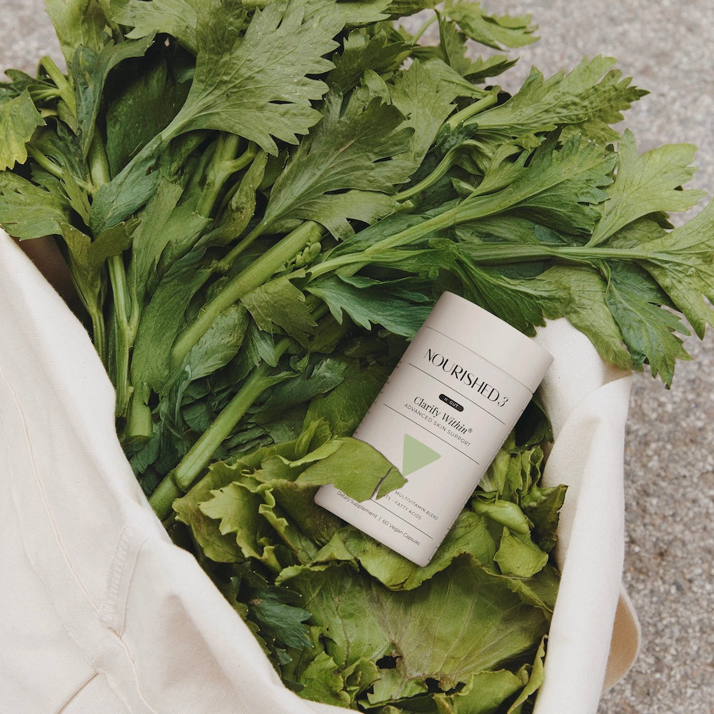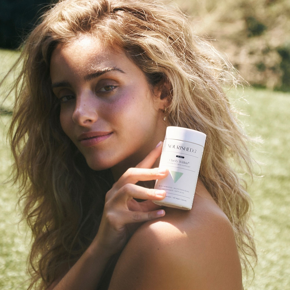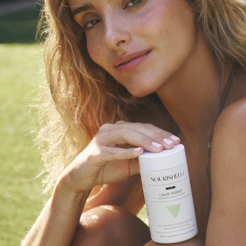 Clarify Within® is a breakthrough supplement for clear, radiant skin that works through the skin–gut–brain axis™. It combines 6 billion CFUs of clinically studied probiotics, adaptogens, postbiotics, and plant-based omegas with essential vitamins and antioxidants to target breakouts, gut imbalances, and stress-related triggers from within.